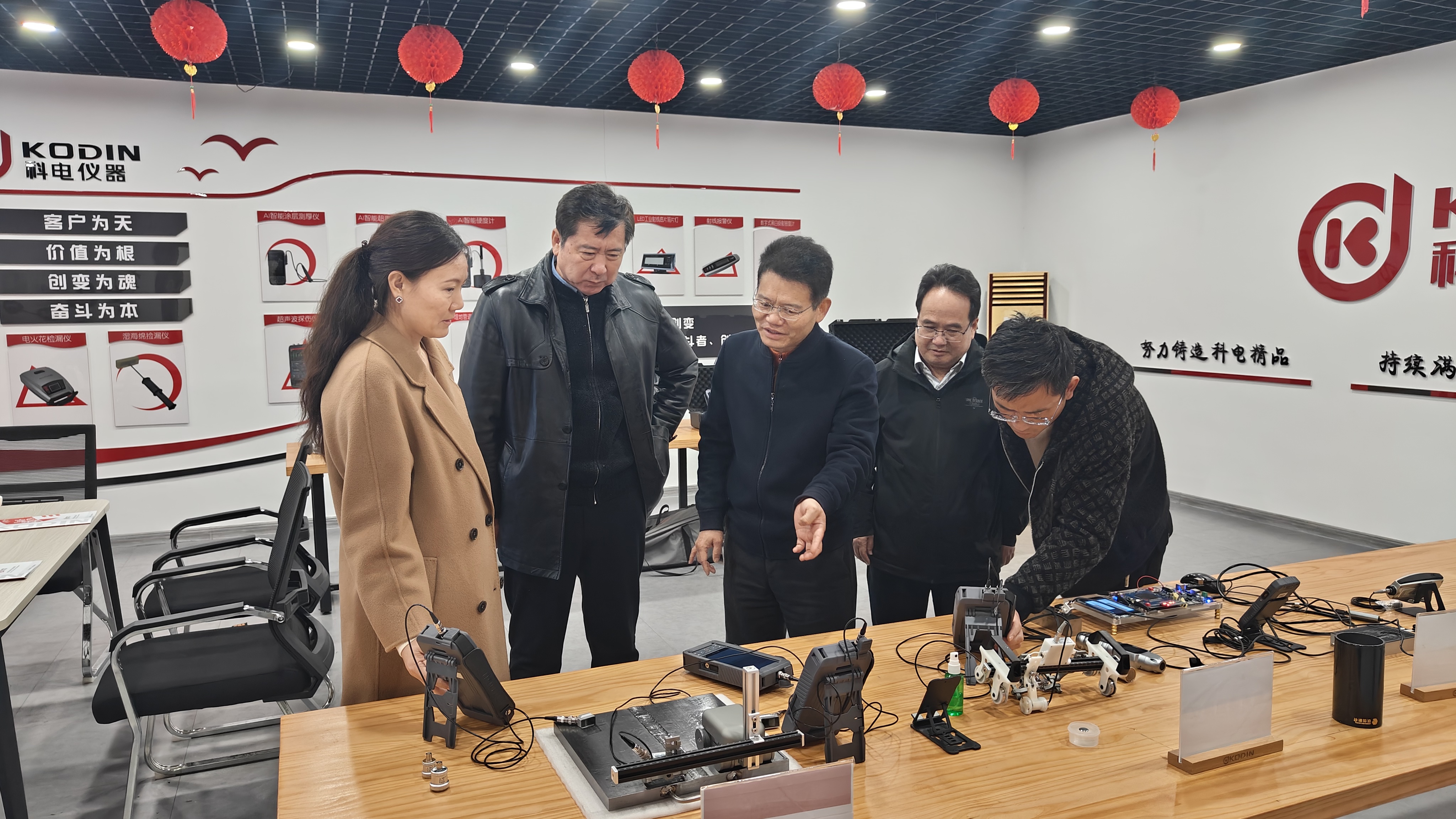 隨后,一行人來(lái)到公司產(chǎn)品展廳,竇總重點(diǎn)介紹了科電儀器自主研發(fā)的智能化檢測(cè)系列產(chǎn)品,